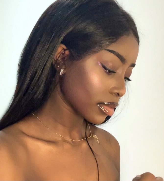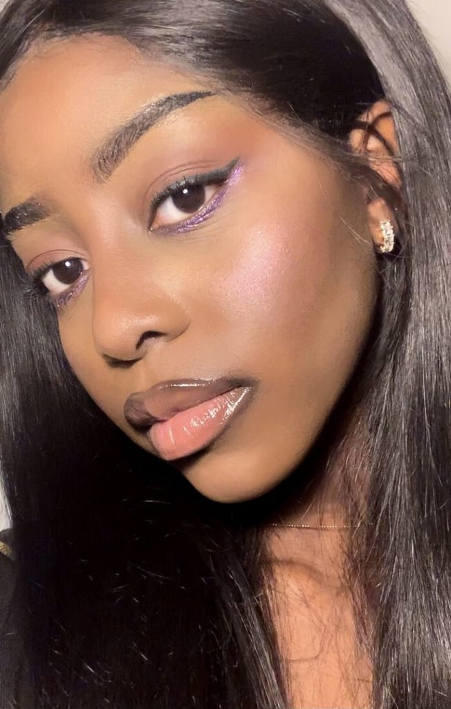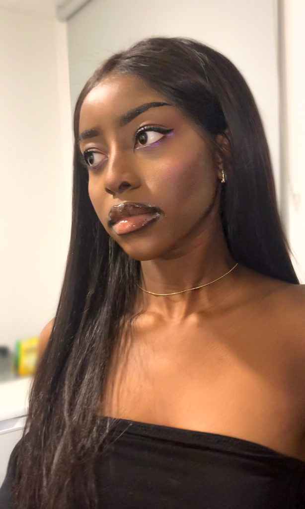 And of course, the final step of my go-to look is the glossy lips with a dark brown liner. I use dark brown liner because it looks great on dark skin tones, and the clear gloss helps to blend it together a little. I think this finishes off my look well because it accentuates the highlights and shimmers beneath my eyes and across my face. Also, by using a clear gloss and neutral colours, I was able to prevent the whole look from appearing too busy with multiple colours going on!