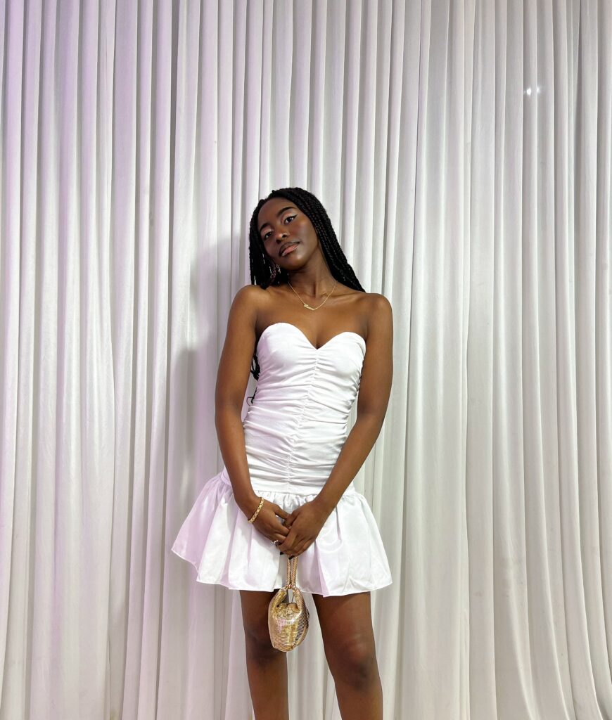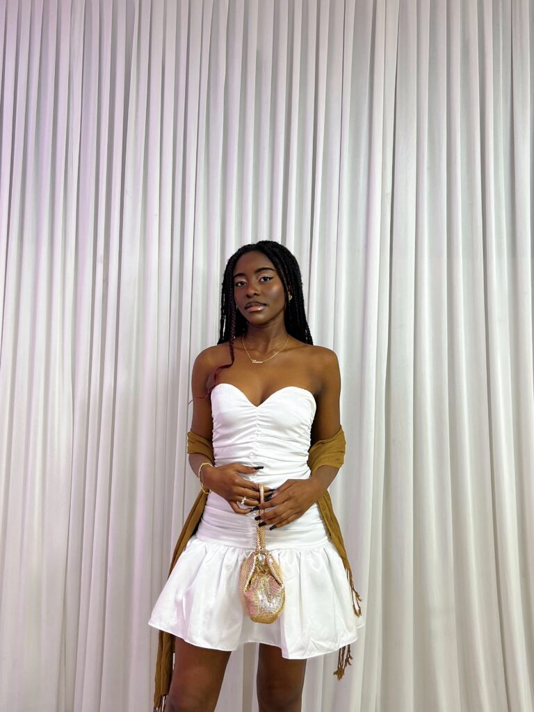 I won’t tell a lie, when I first saw it I scrolled straight past it without thinking twice. But then I scrolled back up and couldn’t stop looking at it. The words that screamed out at me were tacky, prom, early 2010s Disney Channel vibes. I wouldn’t be surprised if a replica of this dress was being styled with a jeans jacket, leg warmers and sneakers for a character on Shake It Up. Anyway, I thought it was very charming and felt like being a little more daring; setting myself a bit of a styling challenge. The safe option would have been a plain ol’ good quality bodycon dress with sky high heels and dressy jewels, but in case you haven’t noticed, we don’t go for the safe option on this site!