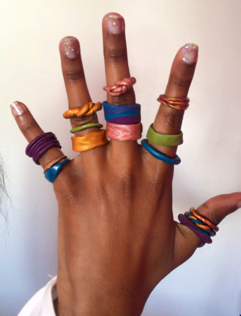 I found that it needs to be ‘warmed up’ in your hands before you can start to create shapes with it. It took me a while to do this as I admit I didn’t have much patience at first. The first couple of rings I made were quite odd and unusual. Whilst we are embracing quirky fashion and accessories, the rings I made were wacky for all the wrong reasons.