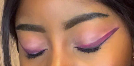 - First pink liner – eyeshadow, achieved with a thin angled brush