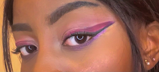 The eyeliner started from the inner corners and travelled all the way towards my temples. I used three colours to add to the thickness of it, and also because I thought they looked nice stacked against each other – with the black liner acting as a barrier to separate the pink and purple. This look contains three different forms of eyeliner. Whilst they can be used independently for a much more simplified look, the images here show how they can compliment each other, and demonstrate how creative you can be combining different liners.